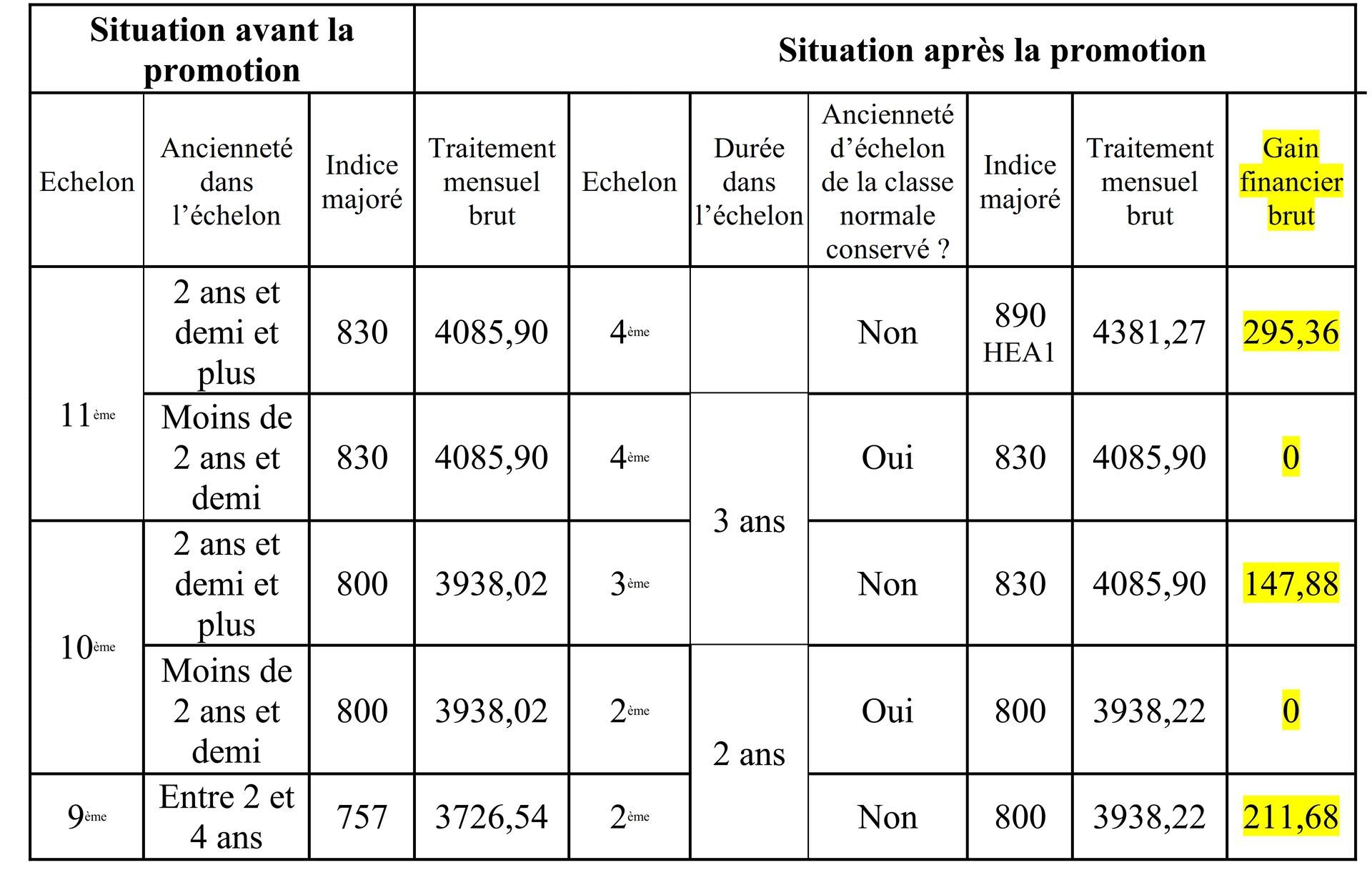 Tu recevras donc un avis de reclassement dans ton nouveau grade suivant le tableau ci-dessous :
